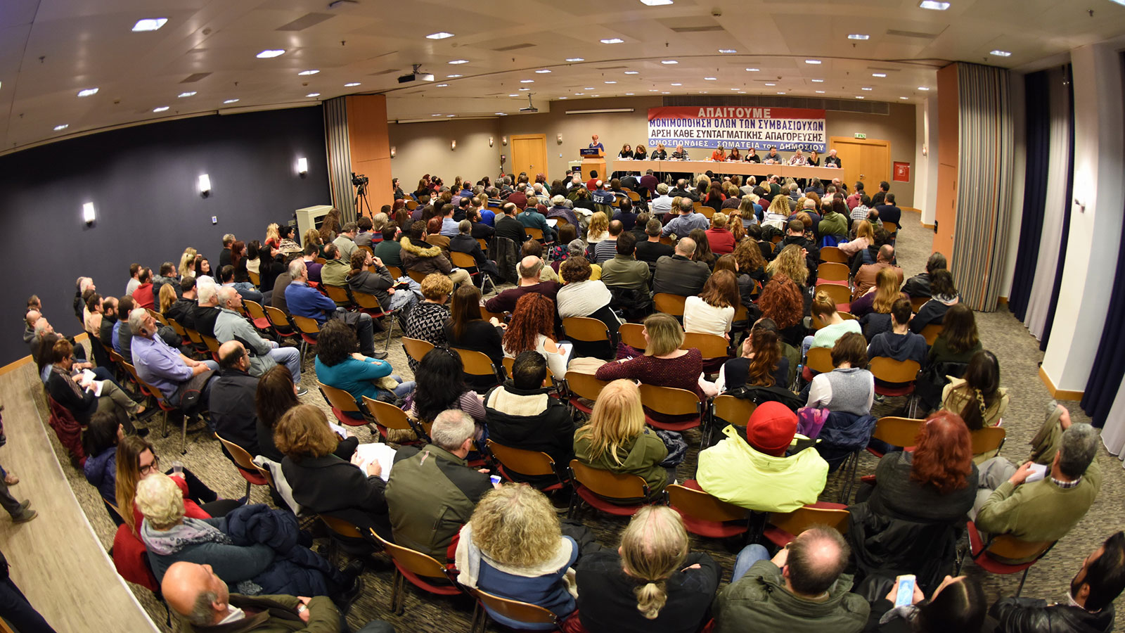 Είμαστε εδώ πάνω από 140 συνδικαλιστικές οργανώσεις που υιοθέτησαν το αίτημα της μονιμοποίησης των συμβασιούχων και της άρσης κάθε εμποδίου που υπάρχει στο Σύνταγμα.