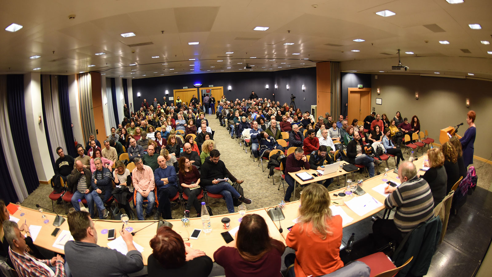 Ξεκαθαρίζουμε επίσης και από αυτό το βήμα ότι σαν συνδικάτα δεν πρόκειται να μπούμε στην κυβερνητική λογική που λέει «ελάτε να συζητήσουμε τα κριτήρια πρόσληψης», δηλαδή ποιοι ή πόσοι θα μείνουν απ’ έξω. Δεν είναι δυνατόν να διαπραγματευόμαστε ποια και πόσα μέλη μας θ’ απολυθούν. Δεν δεχόμαστε τη λογική του διαχωρισμού των εργαζομένων και κυρίως δεν μπορούμε να επιτρέψουμε την ανθρωποφαγία και τον κανιβαλισμό που επιδιώκει η κυβέρνηση.