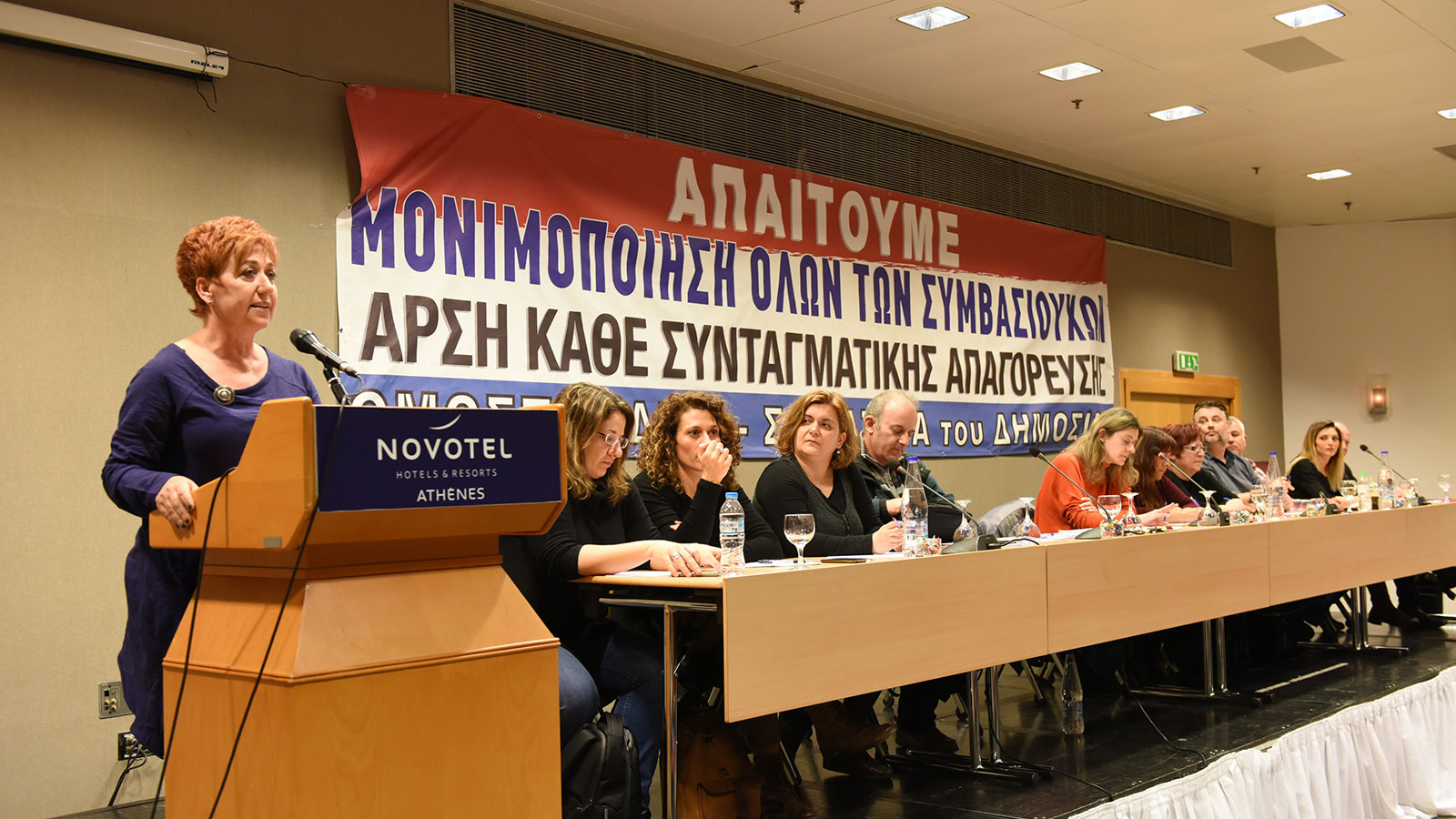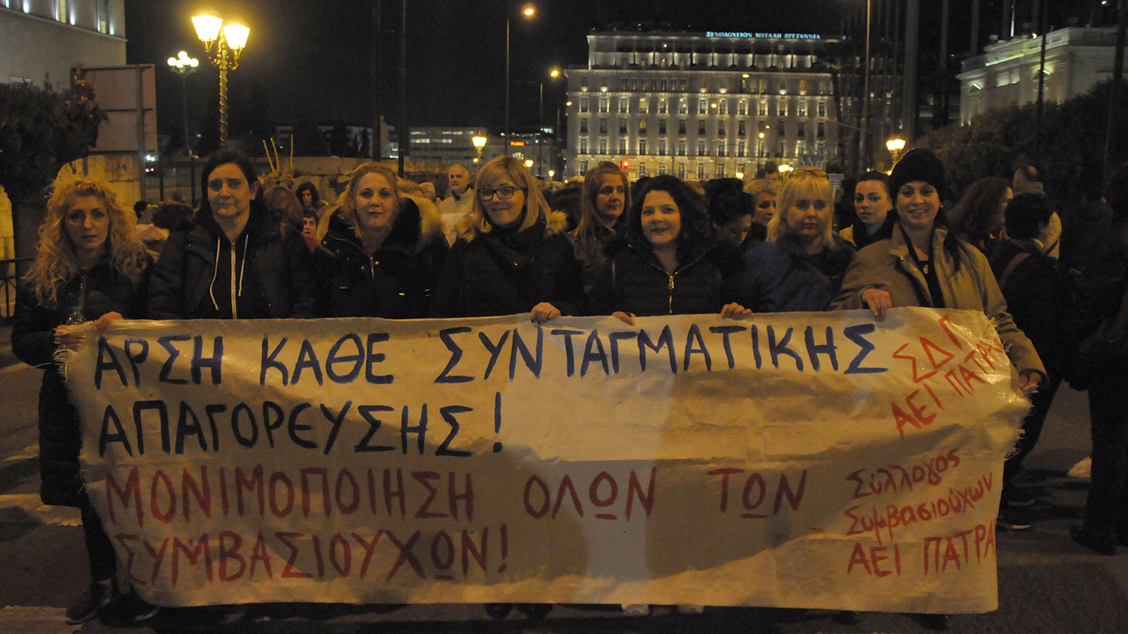 Ο αγώνας μας για τη μονιμοποίηση των συμβασιούχων είναι αγώνας ενάντια σε όλες τις ελαστικές μορφές απασχόλησης, ενάντια στις απολύσεις, είναι αγώνας για ζωή με αξιοπρέπεια.