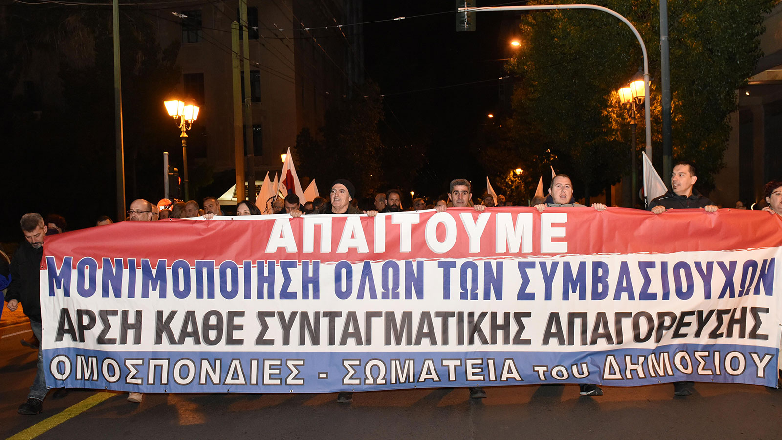 Κινητοποίηση με προμετωπίδα το αίτημα για μόνιμη δουλειά με δικαιώματα, εφαλτήριο για τους αγώνες που θα ακολουθήσουν, πραγματοποιήθηκε πάνω από 140 συνδικαλιστικές οργανώσεις του Δημοσίου. Με συγκέντρωση στην πλατεία Κλαυθμώνος και πορεία που έφτασε στη Βουλή, διαδήλωσαν το αίτημα για μονιμοποίηση όλων των συμβασιούχων και άρση κάθε συνταγματικής απαγόρευσης.